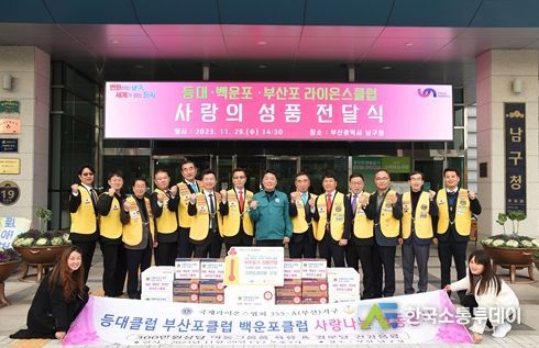 한국소통투데이 관리자 기자 | 부산 남구에서는 지난 29일 등대·부산포·백운포 라이온스클럽에서 뉴케어 건강음료(30개입) 24박스 및 구이용 고기 5박스를 전달했다.
