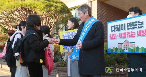 전북교육청은 올해 첫 시행되는 ‘전북교육인권주간’을 맞아 4일 ‘모두의 인권, 서로 존중하는 우리’라는 주제로 전주서곡초등학교 앞에서 캠페인을 실시했다.