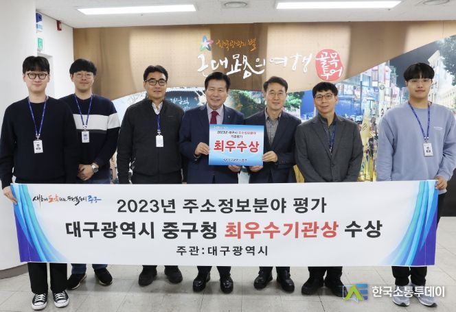 한국소통투데이 관리자 기자 | 대구 중구는 대구시 주관 ‘2023년 주소정보 업무 분야 종합평가’에서 최우수 기관으로 선정됐다.