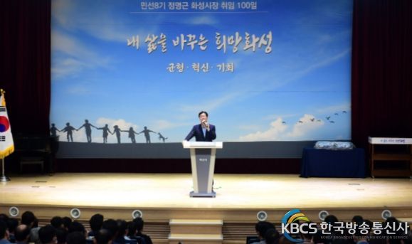 한국방송통신사 관리자 기자 | 정명근 화성시장이 취임 100일을 맞아 열린 월례조회에서 기존의 틀을 깨는 새로운 방식의 월례조회를 예고하며 “일방향이 아니라 양방향으로 소통하겠다”고 말했다.