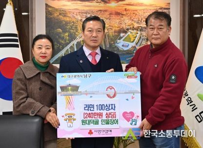 한국소통투데이 관리자 기자 | 대구광역시 남구청은 지난 11월 29일, 원대덕골 민물장어에서 겨울철을 맞아 취약계층을 위하여 라면 100상자(240만원 상당)를 기탁했다고 5일 밝혔다.