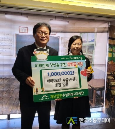 한국소통투데이 관리자 기자 | 아이코리아수성구지회는 지난 4일 송년회 행사에서 지역의 다채로운 인재 양성을 위한 장학금 100만원을 수성미래교육재단에 기탁했다.