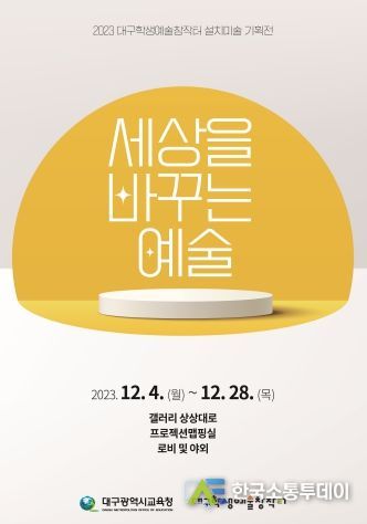 한국소통투데이 관리자 기자 | 대구시교육청은 학생들의 체험과 경험을 바탕으로 제작한 다채로운 주제의 설치미술 작품들을 학생, 학부모 및 지역사회와 함께 공유하기 위해 오는 12월 28일까지 대구학생예술창작터 실내ㆍ외 전시공간에서 ‘2023. 대구학생예술창작터 설치미술 기획전’을 개최한다.