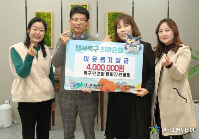 한국소통투데이 관리자 기자 | 대구북구민간어린이집연합회에서는 12월 5일 북구 저소득층 지원을 위한 성금 400만원을 대구 북구청에 기탁했다.