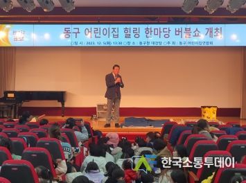 한국소통투데이 관리자 기자 | 동구 어린이집연합회는 12월 5일 동구청 대강당에서 동구 어린이집 어울림 한마당의 일환으로 동구 어린이집 힐링 한마당 버블쇼를 개최했다.