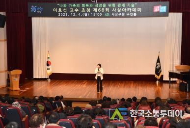 한국소통투데이 관리자 기자 | 부산 사상구는 지난 4일 오후 3시 사상구청 구민홀에서 가족상담계의 스타강사로 통하는 국민 상담가 이호선 교수를 초청해 제68회 사상아카데미를 성황리에 개최했다.