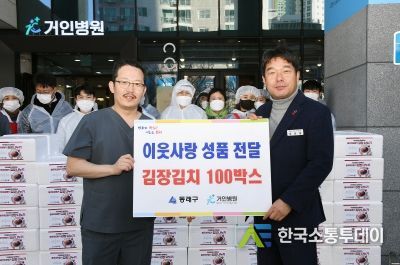 거인병원은 작년에도 김장김치 100박스를 기탁했으며, 올해도 김장나누기 행사를 진행하면서 직원들이 직접 담근 김치를 어려운 이웃을 위해 기탁했다.