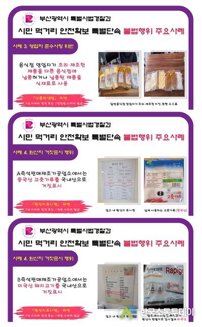 한국소통투데이 관리자 기자 | 부산시특별사법경찰과는 지난 11월 한 달간 시민 먹거리 안전 확보를 위한 특별단속을 실시한 결과, 총 19곳의 불법업소를 적발했다고 밝혔다.