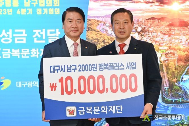 한국소통투데이 관리자 기자 | 대구광역시 남구청은 지난 7일, (재)금복문화재단(이사장 김동구)에서 어려운 이웃을 위한 성금 1천만원을 기탁했다고 8일 밝혔다.