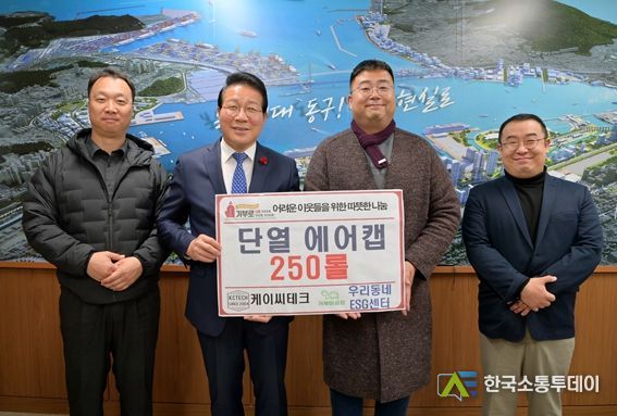 한국소통투데이 관리자 기자 | 동구 우리동네ESG센터 및 케이씨테크는 지난 6일, 동구의 취약계층 세대가 따뜻한 겨울을 날 수 있도록 단열뽁뽁이 250말이(환가액 540만 원 상당, 1말이 900*10m)를 기탁했다.