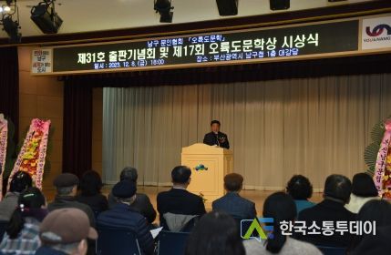 한국소통투데이 관리자 기자 | 지난 12월 8일 부산 남구청 1층 대강당에서는 부산 남구문인협회가 발간하는 '제31호 오륙도문학 출판기념회' 및 '제17회 오륙도문학상 시상식'을 개최했다.