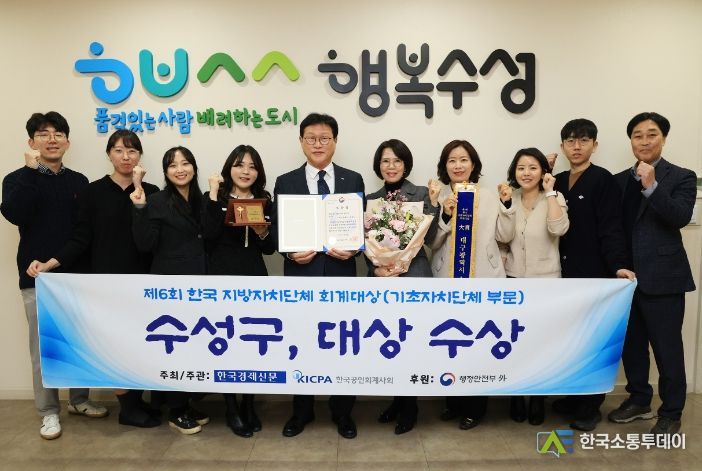 한국소통투데이 관리자 기자 | 대구 수성구는 ‘제6회 한국 지방자치단체 회계대상’에서 기초자치단체 부문 대상을 수상했다고 12일 밝혔다.