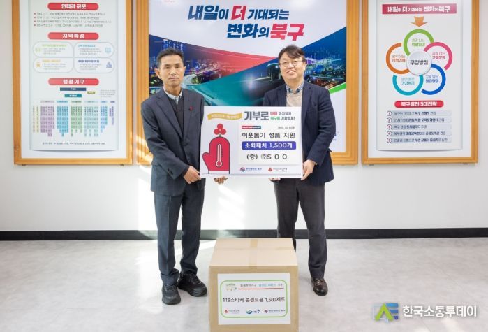 한국소통투데이 관리자 기자 | 부산 북구는 지난 8일 ㈜수(대표 황득규)가 북구청을 찾아 화재취약계층을 위해 ‘소화패치 1,500세트’를 기탁했다고 밝혔다.