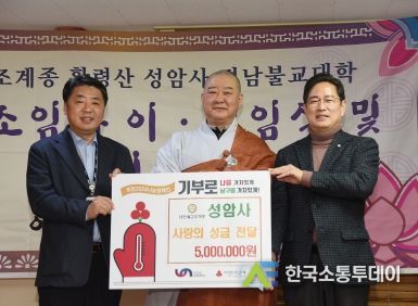 한국소통투데이 관리자 기자 | 성암사에서는 지난 7일 부산광역시 남구에 이웃돕기 성금 500만 원을 전달했다.