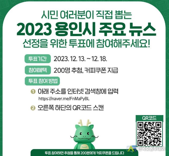 투표는 네이버 폼으로 진행하며, 용인시청 홈페이지나 용인시 공식 인스타그램, 블로그 등 SNS에 게시된 QR코드를 통해 접속할 수 있다.