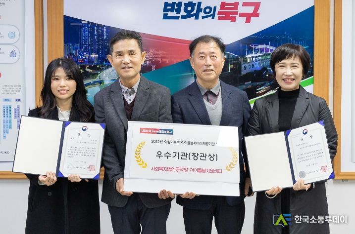 북구의 사회복지법인공덕향은 이번 아이돌봄서비스 평가에서 ▲만족도 ▲이용가정·아이돌보미 증가율 ▲서비스 점검 부문에서 높은 점수를 받았고, 이에 따라 안정적인 양육환경 조성에 이바지하여 아이돌봄서비스 제공기관 우수기관으로 선정되는 쾌거를 이루었다. 이외에도 개인으로 공덕향의 주연화 직원이 아이돌봄 우수수기 공모전에 대상을 수상하는 성과를 거뒀다.