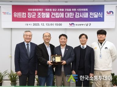 한국소통투데이 관리자 기자 | 부산광역시 남구는 13일 남구청에서 위트컴 장군 조형물 건립에 기여한 공로로 위트컴 희망재단-위트컴 장군 조형물 건립 시민위원회로부터 감사패를 수여 받았다.