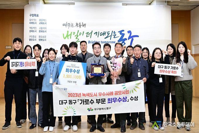 한국소통투데이 관리자 기자 | 대구 동구청이 지난 7일에 열린 산림청 주관 ‘2023년 녹색도시 우수사례 공모’에서 가로수 부문 최우수 기관상을 수상했다.