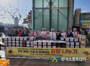 한국소통투데이 관리자 기자 | 동래구여성단체협의회와 롯데백화점 동래점은 지난 8일 동래구여성단체, 다문화가족, 장준용 동래구청장, 롯데백화점 임직원 등 100명이 참여한 가운데 롯데백화점 동래점 정문 광장에서 2023년 이웃돕기 김장나누기 행사를 개최했다고 밝혔다.