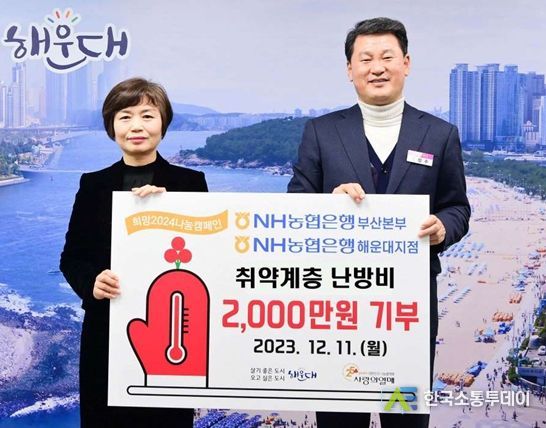 한국소통투데이 관리자 기자 | NH농협은행 부산본부와 NH농협은행 해운대지점은 지난 11일 연말을 맞아 관내 취약계층 난방비에 써달라며 해운대구청에 2,000만 원을 기탁했다.