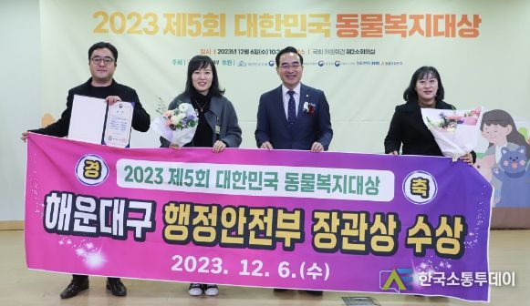 한국소통투데이 관리자 기자 | 해운대구가 국회의원 연구단체 동물복지국회포럼(공동대표 박홍근·이헌승·한정애)이 주최한 ‘2023 제5회 대한민국 동물복지대상’ 우수상(행정안전부 장관상)을 수상했다.