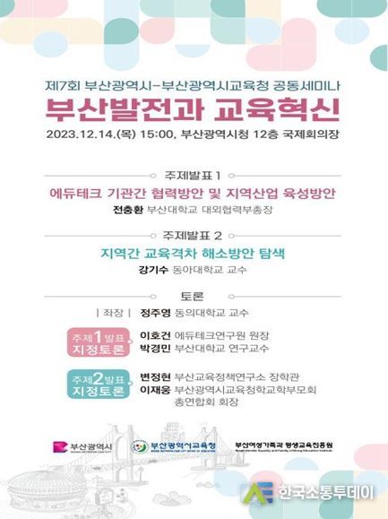 한국소통투데이 관리자 기자 | 부산시는 오늘(14일) 오후 3시 시청 국제회의장에서 '제7회 시-교육청 공동세미나'를 개최한다고 밝혔다.