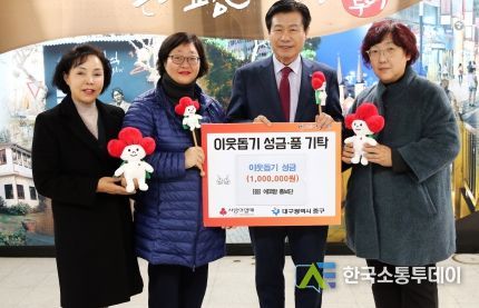 한국소통투데이 관리자 기자 | 에코맘홍보단은 14일 대구 중구청을 방문해 어려운 이웃을 위한 연말 이웃돕기 성금으로 100만원을 기탁했다.