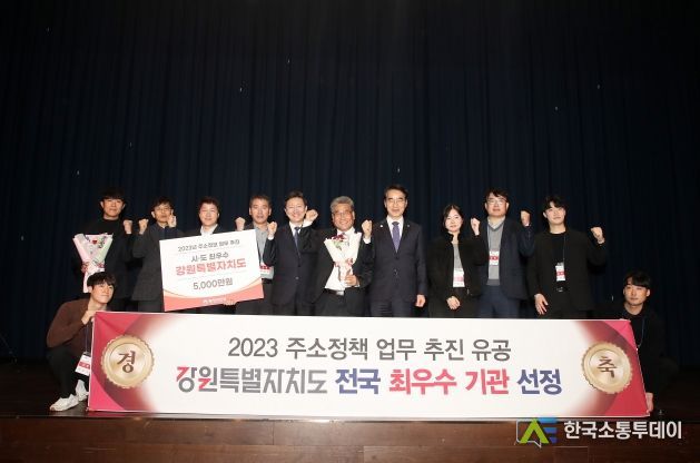 한국소통투데이 관리자 기자 | 강원특별자치도는 14일 삼척(쏠비치)에서 행정안전부 주관으로 개최된 ‘2023 주소정책 성과 공유 워크숍’ 행사에서 2023년 전국 지자체(개인·단체) 주소정보 업무 유공 평가 결과, 최우수 지자체(기관)로 선정됐다고 밝혔다.