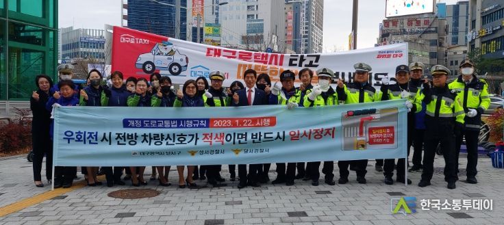 이동과 교통량이 증가하는 연말연시를 앞둔 이번 캠페인에서는 횡단보도 손짓 캠페인, 우회전 차량 일시정지 준수, 이륜차 및 전동킥보드 안전운행, 스쿨존 내 운전자 유의사항 등의 교통안전 시책과 더불어 대중교통 이용 활성화를 위한 알뜰교통카드, 대구로택시 이용을 함께 홍보했다.
