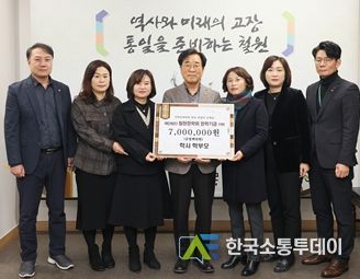 15일 철원군에 따르면 수혜 학생들의 학부모 7가족이 군청을 찾아 십시일반 100만원씩 모두 700만원을 철원군 장학회에 전달했다.