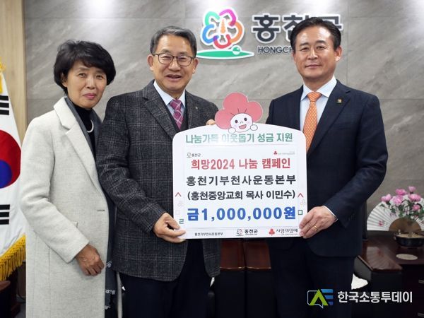 한국소통투데이 관리자 기자 | 홍천기부천사 운동본부는 12월 14일 홍천군청을 방문하여 2024년 희망 나눔 캠페인 나눔가득 이웃돕기 성금 100만원을 기탁했다.
