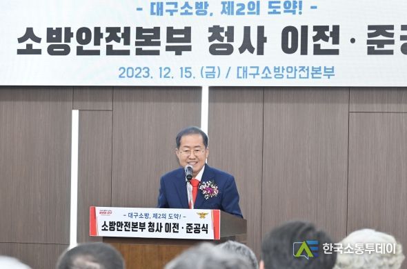 홍준표 대구광역시장은 “소방안전본부가 26년 만에 독립 소방청사로 이전하게 된 것을 축하한다”며, “시민들의 안전을 지키는 막중한 책임을 지고 있는 만큼 개선된 근무환경에서 더욱 수준 높은 소방 서비스를 제공하도록 노력해 주길 바란다”라고 말했다.