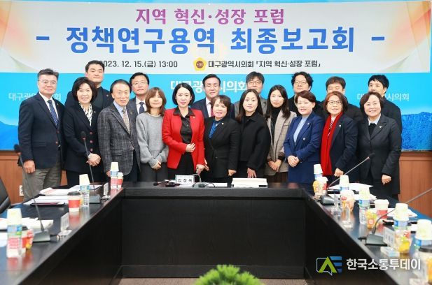 한국소통투데이 관리자 기자 | 대구시의회 의원연구단체 ‘지역 혁신·성장 포럼’(대표 김정옥 의원)은 12월 15일 오후 1시 30분 의회 2층 회의실에서 소속단체 의원(대표 김정옥, 간사 박소영, 김원규, 류종우, 박종필, 윤권근, 이영애, 이태손, 하병문, 허시영, 황순자)이 참석한 가운데 정책연구용역 최종보고회를 개최했다.
