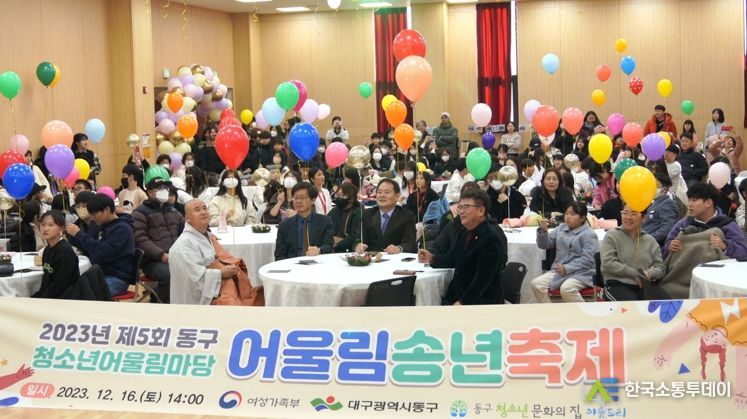 한국소통투데이 관리자 기자 | 2023년 제5회 동구 청소년어울림마당 ‘어울림송년축제’가 지난 16일, 동구청소년문화의집 아름드리에서 개최됐다. 대구 동구청이 주최하고, 동구청소년문화의집 아름드리(관장 설영일)이 주관했다.