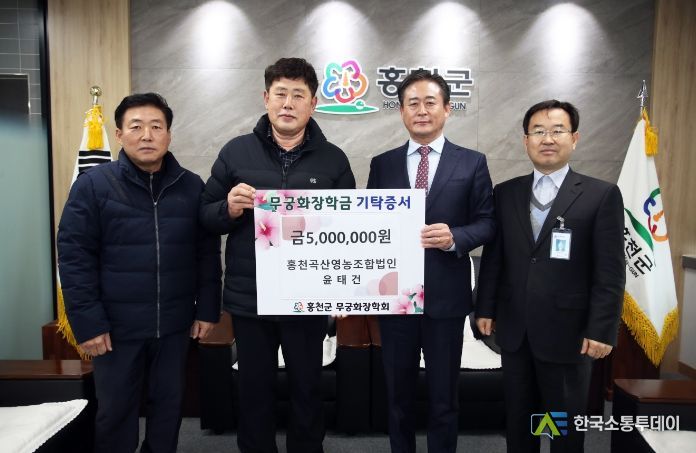 홍천곡산영농조합법인 윤태건 회장은 “홍천군의 향토인재 육성을 위한 무궁화장학금을 기탁하게 됐다.”라고 전했다.