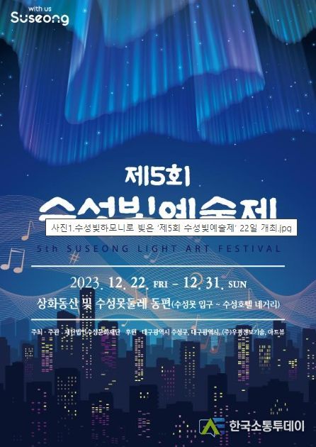 올해로 5회째를 맞은 수성빛예술제는 대구 최고의 관광명소 수성못에서 작가와 주민이 빛 예술작품을 직접 제작해 전시하는 지역의 대표 겨울 축제다.