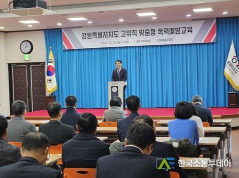 한국소통투데이 관리자 기자 | 강원특별자치도는 18일 도청 신관 대회의실에서 도청 고위직 간부 공무원을 대상으로 폭력예방 특별교육을 실시했다.