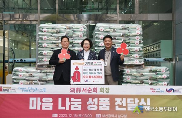 한국소통투데이 관리자 기자 | 던필드그롭 湖靜(호정)서순희 회장은 지난 15일 부산광역시 남구에 관내 저소득층 및 복지시설에 전달해 달라며 백미 4,500kg을 전달했다.