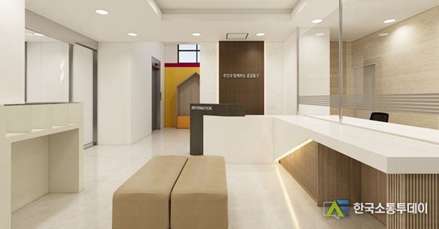 민원실은 기존의 관공서에서 연상되는 딱딱한 느낌이 아닌 밝고 환한 분위기로 꾸며졌다. 또한 진료실 입구마다 대형 번호판과 동선 유도 화살표를 부착하여 주민들이 쉽게 찾아갈 수 있도록 했다.