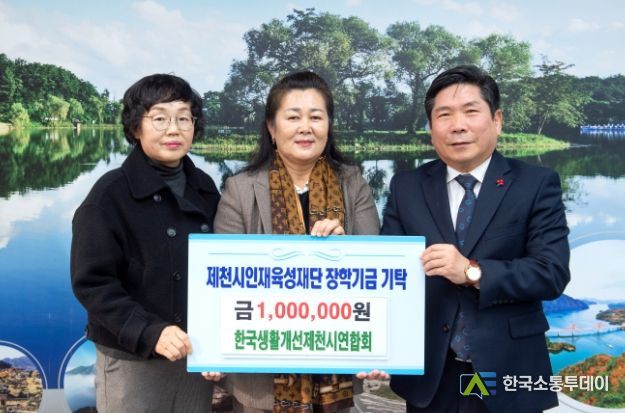 한국소통투데이 관리자 기자 | 한국생활개선제천시연합회는 18일 지역 학생들에게 작은 도움이 되고 싶다며 제천시 인재육성재단을 방문해 장학금 100만원을 기탁했다.