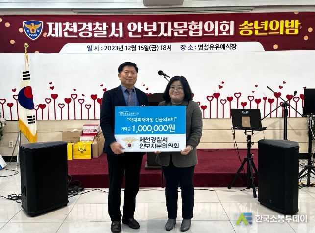 한국소통투데이 관리자 기자 | 제천경찰서 안보자문협의회는 북한이탈주민 자녀 긴급의료비 1,000,000원을 지난 15일 충북북부아동보호전문기관에 기탁했다.