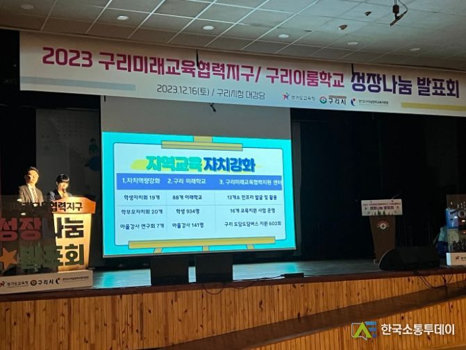 한국소통투데이 관리자 기자 | 경기도구리남양주교육지원청은 지난 12월 16일 구리시청 대강당에서 ‘2023 구리 미래교육협력지구 및 구리이룸학교 성장나눔 발표회’를 개최했다.