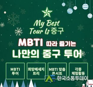 류규하 중구청장은 “변화하는 관광 트렌드에 맞춘 다양한 수요를 충족시키기 위해 이번 프로그램을 마련했다”며 “MZ세대를 중심으로 자리잡은 MBTI 테마를 활용해 관광객들에게 중구의 관광 콘텐츠들을 소개하고, 자신의 여행 스타일에 맞게 중구를 즐길 수 있도록 프로그램을 발전시켜 나가겠다”고 말했다.