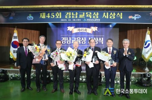 한국소통투데이 관리자 기자 | 경상남도교육청은 20일 도교육청 강당에서 ‘제45회 경남교육상 시상식’을 열었다. 이날 수상자와 수상자 가족, 경상남도의회 교육위원회 위원장, 경남교육삼락회장, 경남교직단체장, 교육지원청 교육장, 본청 직원 등 100여 명이 참석했다.