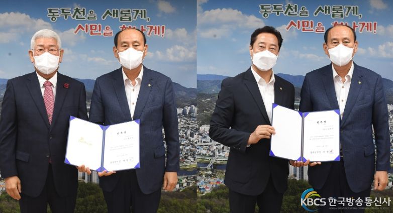 한국방송통신사 관리자 기자 | 동두천시는 지난 7일 시청 시장실에서 안전보안관 대표단 위촉식을 개최하고 대표 홍인식, 부대표 임상우에게 위촉장을 수여했다. 홍인식 대표, 임상우 부대표는 10월 5일, 8개동 안전보안관 동 대표단 회의를 통해 시를 대표하는 안전보안관 대표와 부대표로 선정되어 향후 2년간 대표단으로 활동하게 된다.