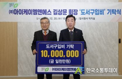 한국소통투데이 관리자 기자 | ㈜아이케이엠앤에스는 20일 청주시청을 방문해 도서구입비 1,000만원을 기탁했다.