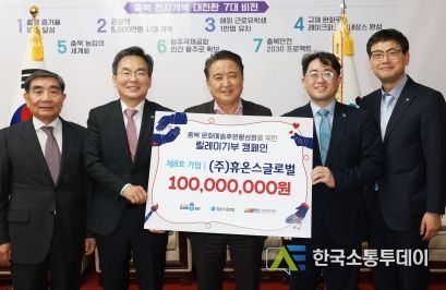 이날 기부식에 참석한 송수영 휴온스글로벌 대표는 "휴온스그룹의 급성장 배경에는 충청북도, 제천시 등 지역민의 응원이 함께 했기에 가능했다"며 "대한민국 중부시대 개막의 핵심 법안인 중부내륙특별법 제정을 통해 충북이 중부시대의 신 거점 지역으로 성장하는데 더욱 기여해 나가겠다"고 말했다.