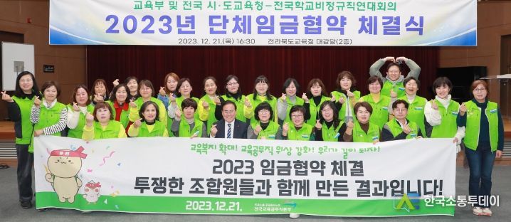 한국소통투데이 관리자 기자 | 교육부 및 17개 시·도교육청과 전국학교비정규직연대회의(학비연대)는 21일 전라북도교육청(교육감 서거석)에서 2023 임금협약을 체결했다.