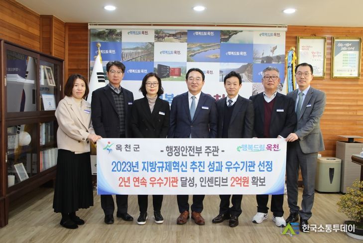 한국소통투데이 관리자 기자 | 옥천군이 2년 연속 행정안전부의 ‘지방규제혁신 추진성과 평가’에서 우수기관에 뽑혀 2억원의 인센티브를 확보했다.