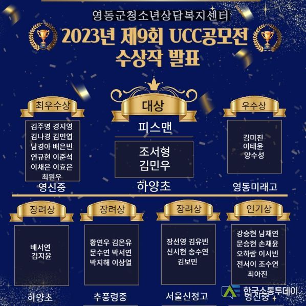 한국소통투데이 관리자 기자 | 충북 영동군 청소년상담복지센터는 2023년 제9회 UCC공모전 수상작을 지난 22일 홈페이지와 SNS를 통해 발표했다.